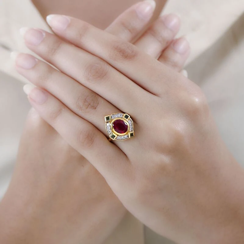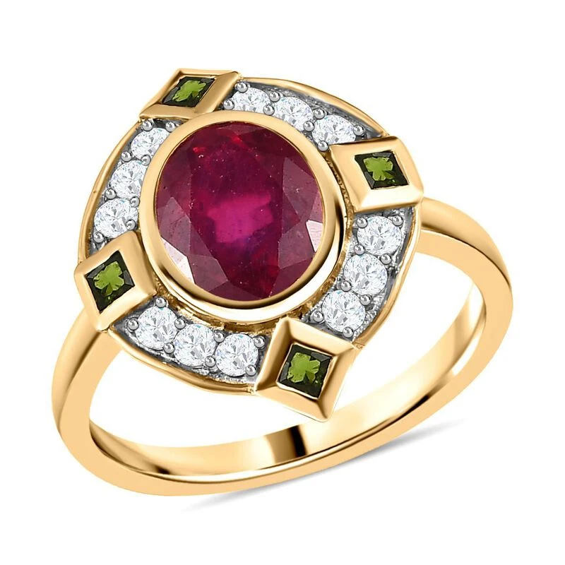 1A Afrikanischer Rubin (Fissure Gefüllt), Natürlicher Chromdiopsid Ringe 925 Silber Vergoldet (Größe 19.00) Ca. 3.11 Ct