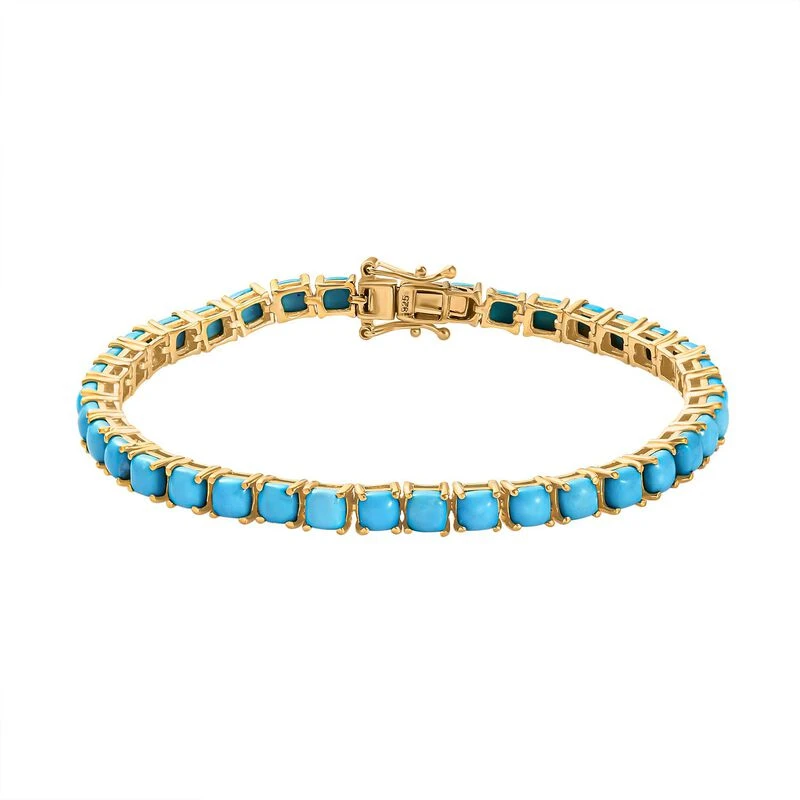AA Amerikaniches Sleeping Beauty Türkis Armband, Ca. 18 Cm 925 Silber Gelbgold Vermeil Ca. 12.28 Ct
