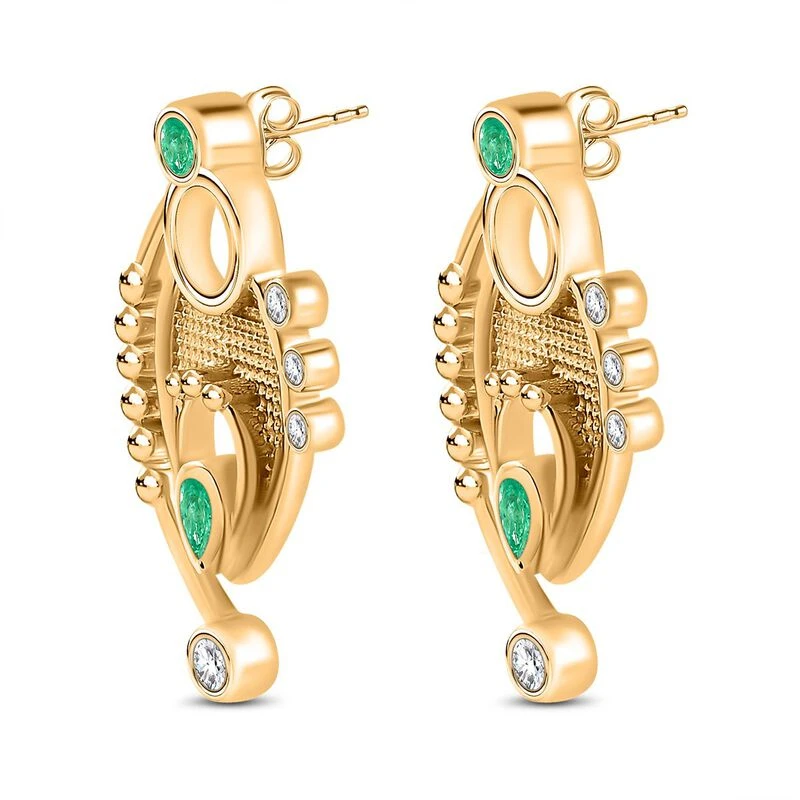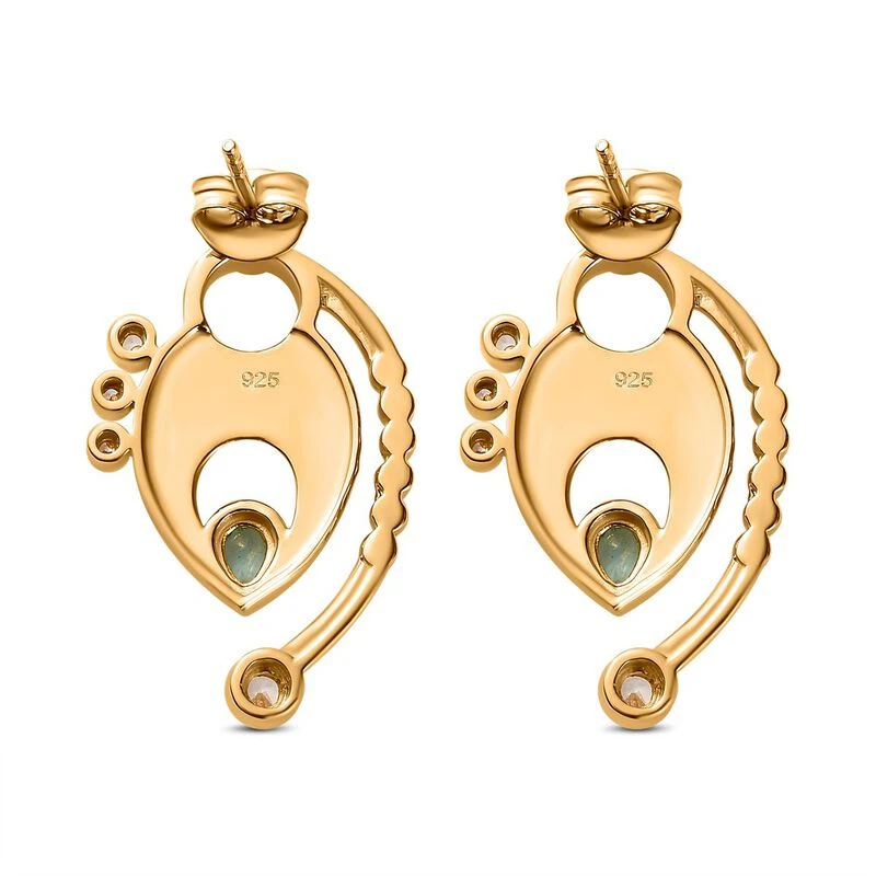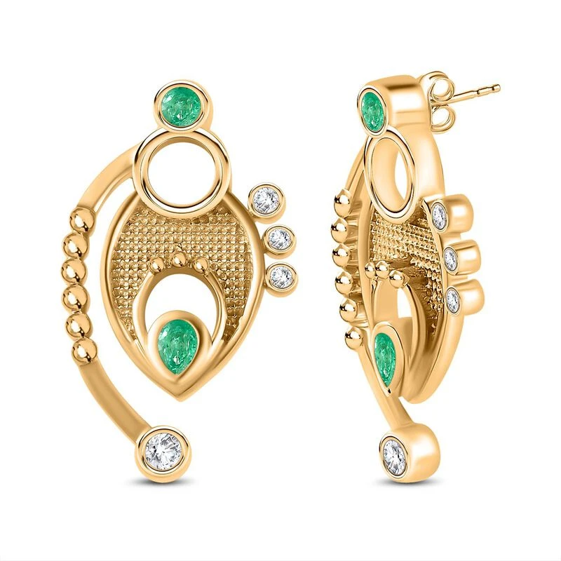 AA Kolumbianischer Smaragd Ohrringe 925 Silber Vergoldet Ca. 0.88 Ct