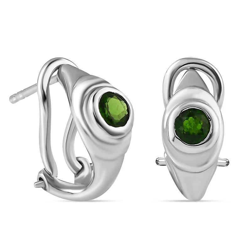 AA Natürlicher Chromdiopsid Ohrringe, 925 Silber Platiniert, Ca. 0.53 Ct