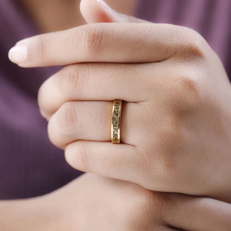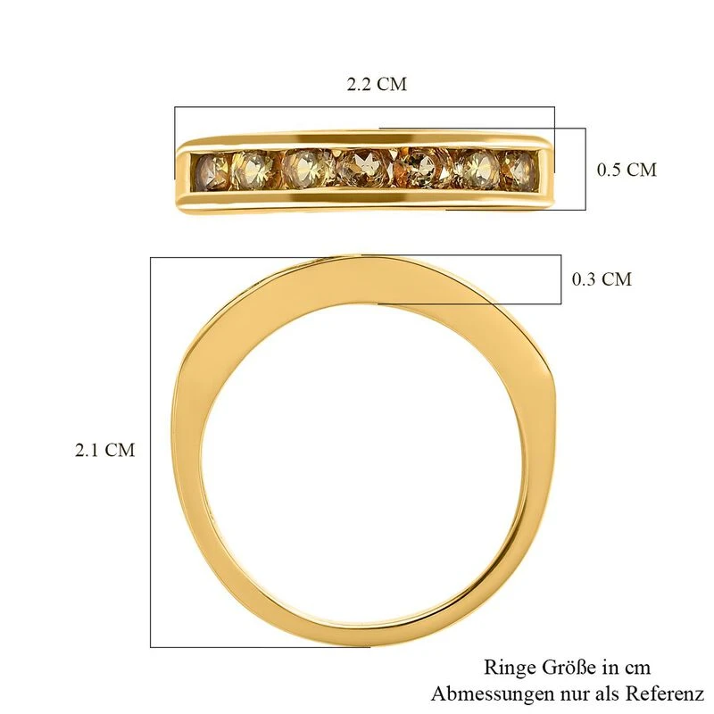 Als Symbol der ewigen Liebe ist dieser Half-Eternity-Ring zeitlos und fasziniert durch die seltenen goldgrünen Farbtöne des goldenen Tansanits. Diese Schönheit ist in Gelbgold Vermeil für einen feinen Glanz überzogen.