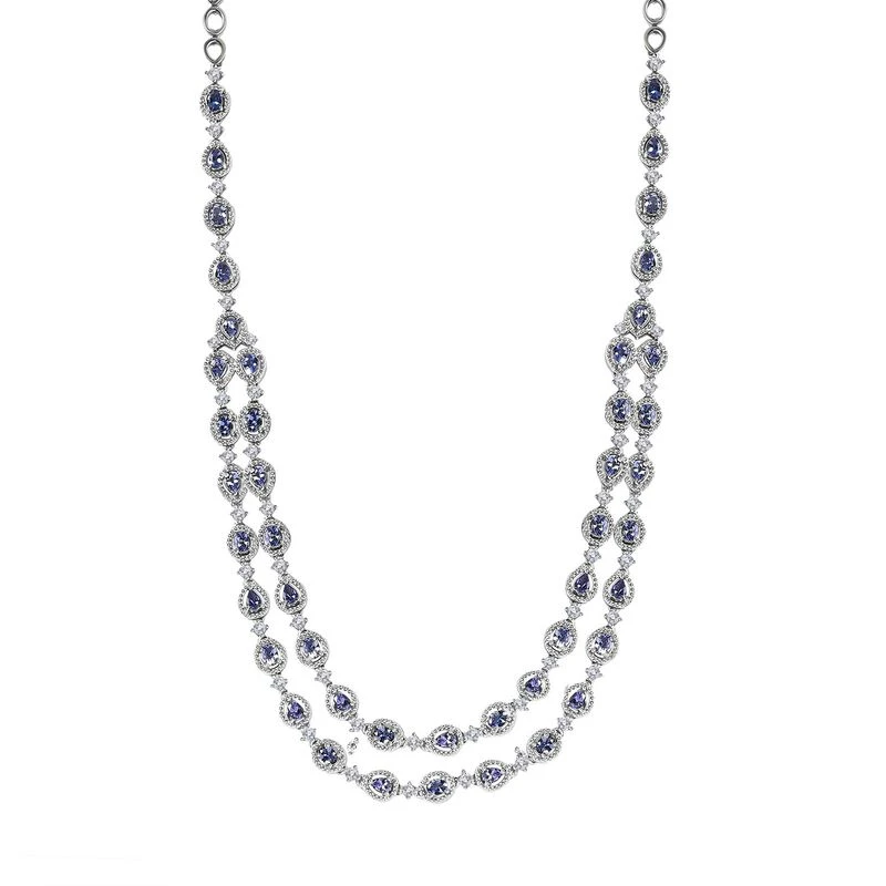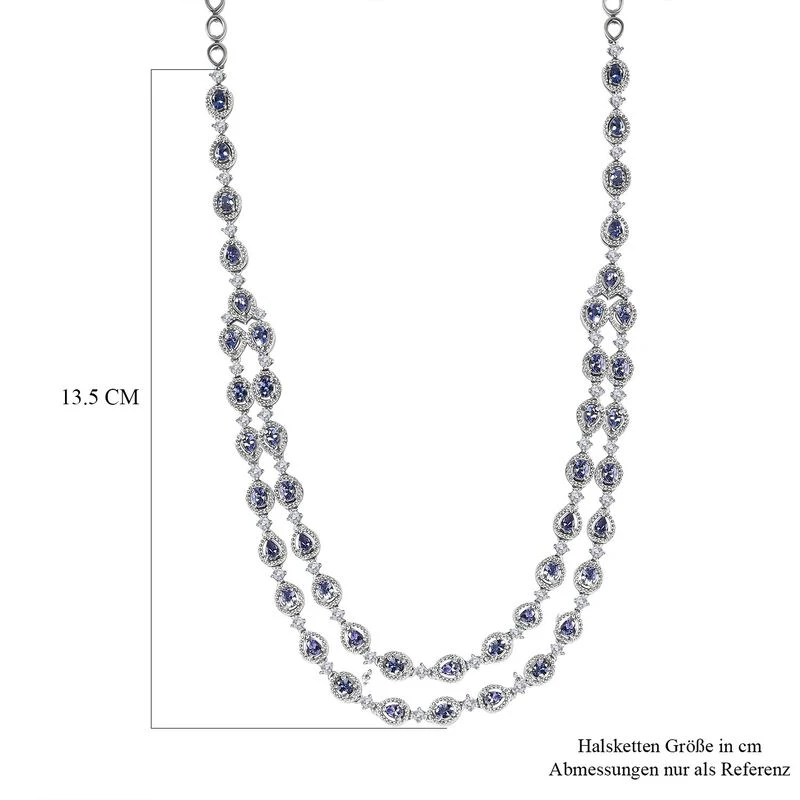 Doppellagige Eternity-Halskette in platiniertem Silber. Großartigkeit und Eleganz kombiniert mit den wunderschönen pleochroitischen Farben des Tansanits bieten Ihnen dieses Erbstück!