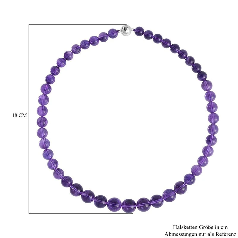 Erleben Sie den satten violetten Farbton des Geburtssteins des Monats Februar in 45 glatten, 9-13 mm großen Perlen. Der Amethyst, der Vielseitigkeit mit Eleganz verbindet, ist ein Premium-Edelstein, der nur 10% der Edelsteine enthält. Ein Magnetverschluss aus rhodiniertem Silber sichert diese 1 Gramm Kette.