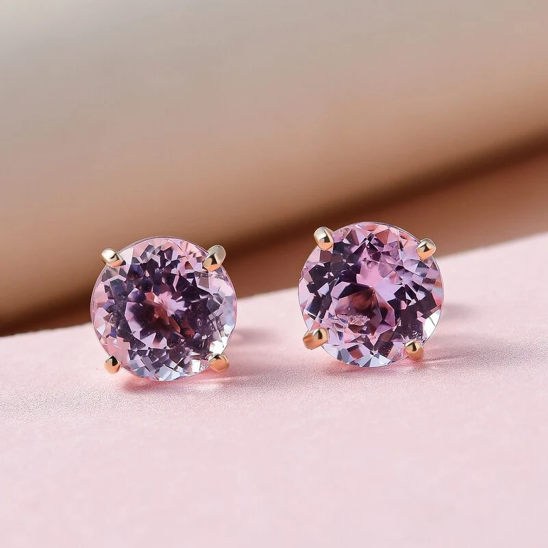 AAA Martha Rocha Kunzit Ohrringe 585 Gold Ca. 5.09 Ct