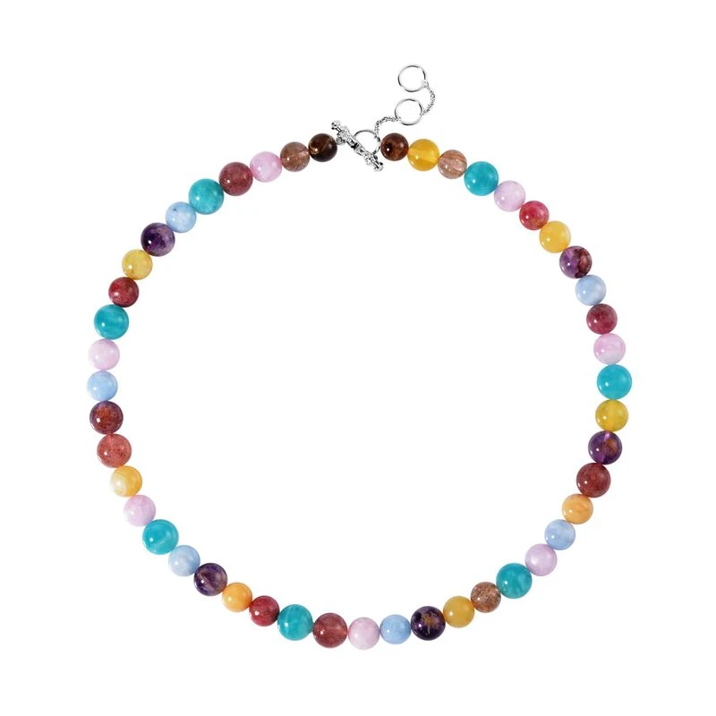 AAA Mehrfarbig Edelsteine, Roter Granat Halskette Ca. 50 Cm 925 Silber Rhodiniert Ca. 414.09 Ct