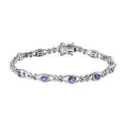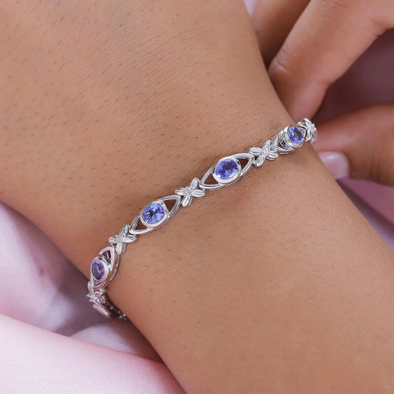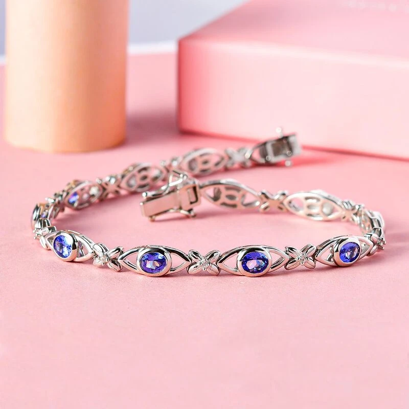 AAA Tansanit Und Weißes Zirkon Armband, Ca. 19 Cm, 925 Silber Platiniert Ca. 2.29 Ct