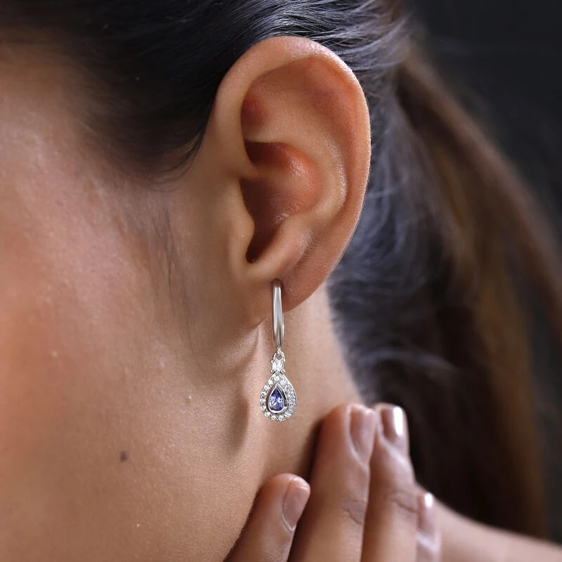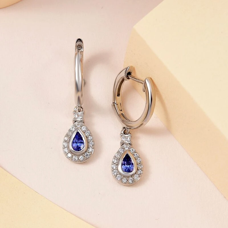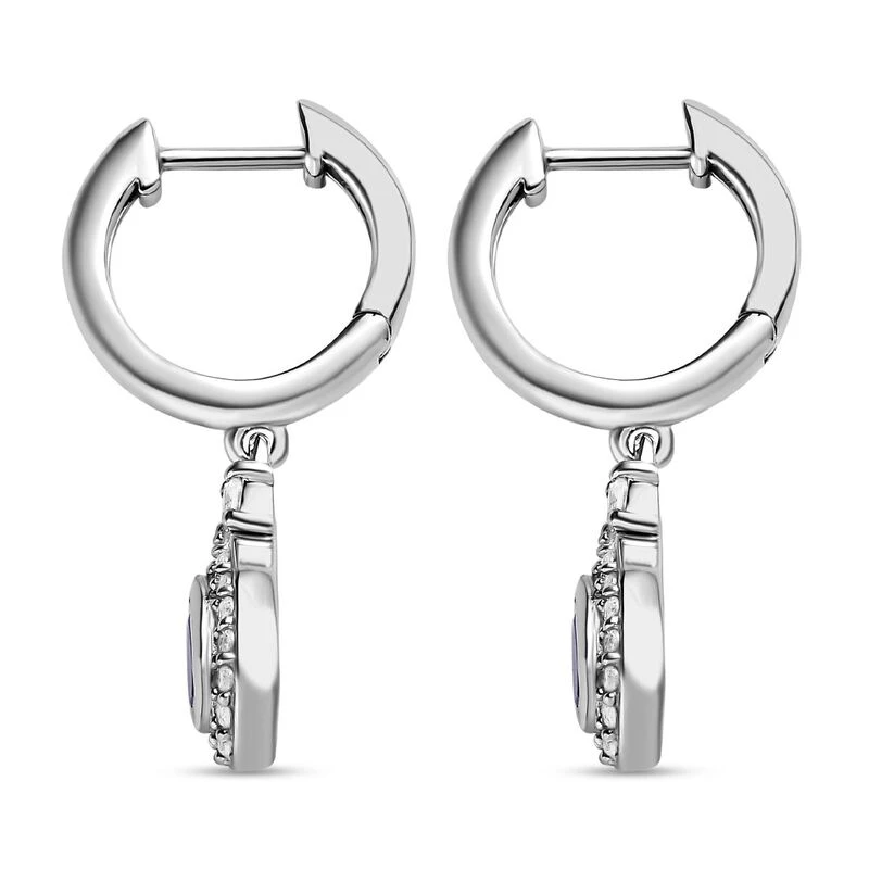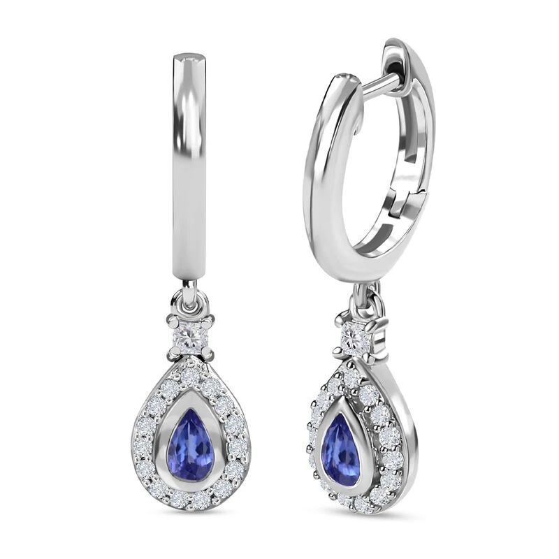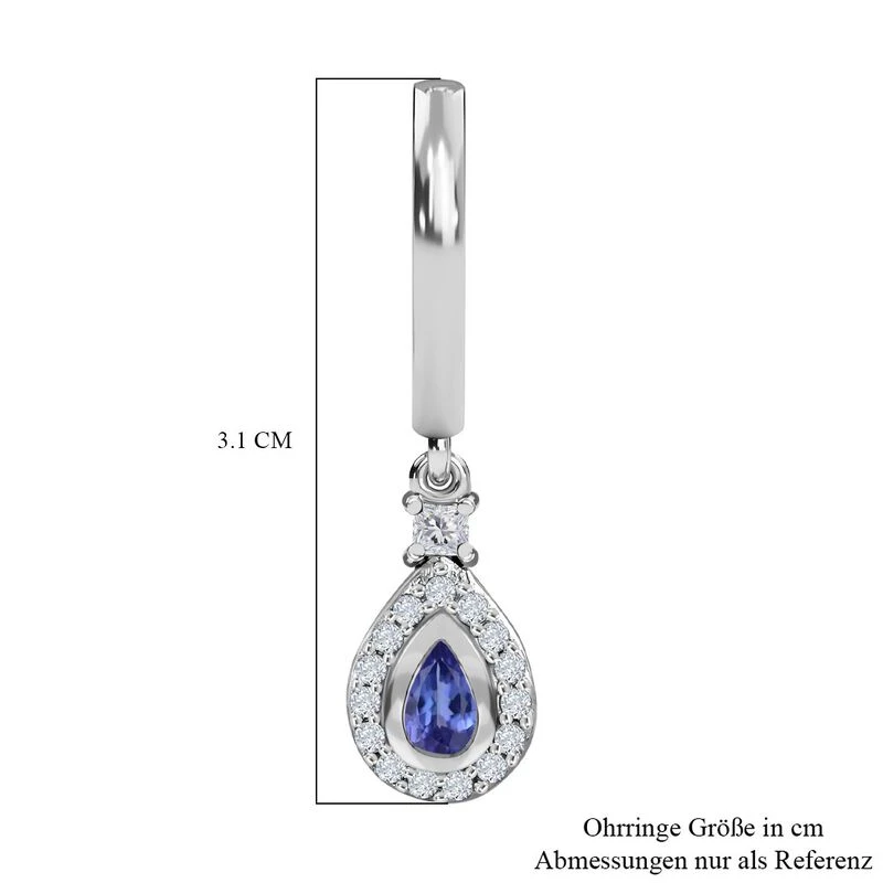 AAA Tansanit, Weiße Zirkon Ohrringe, 925 Silber Platiniert Ca. 1.05 Ct