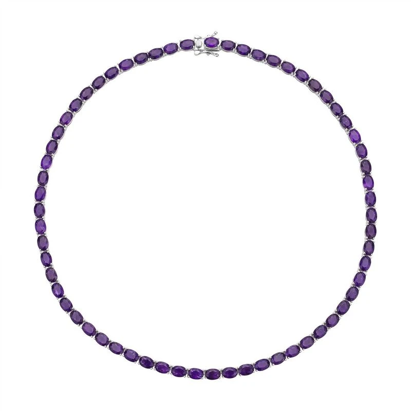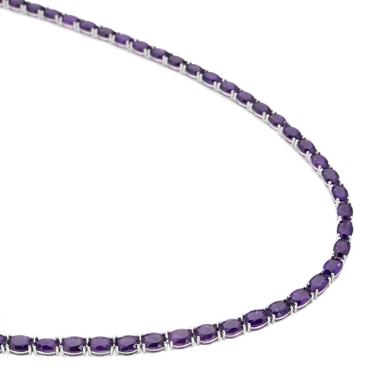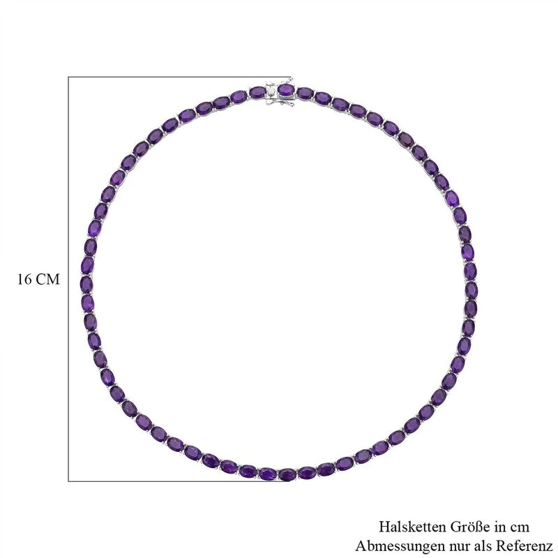 Afrikanische Amethyst Halskette, Ca. 45 Cm, 925 Silber Rhodiniert Ca. 42.72 Ct