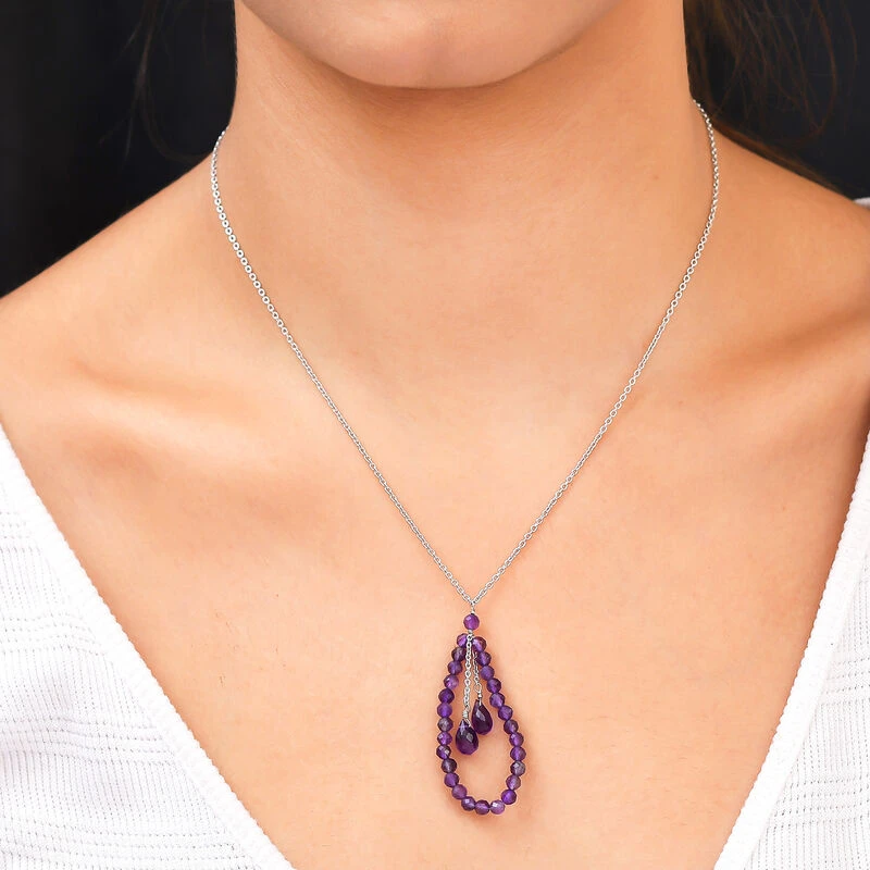 Afrikanische Amethyst-Halskette, Ca. 50 Cm, 925 Silber Rhodiniert Ca. 9.00 Ct
