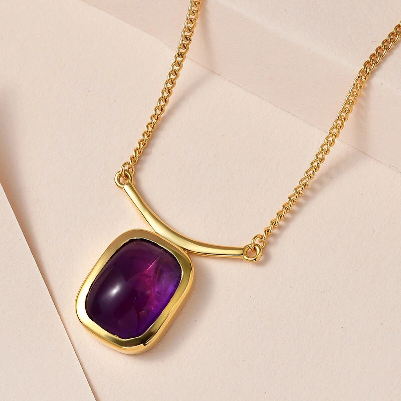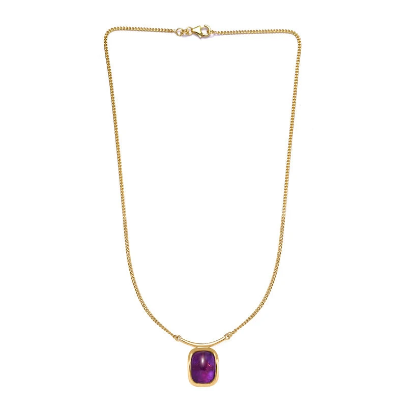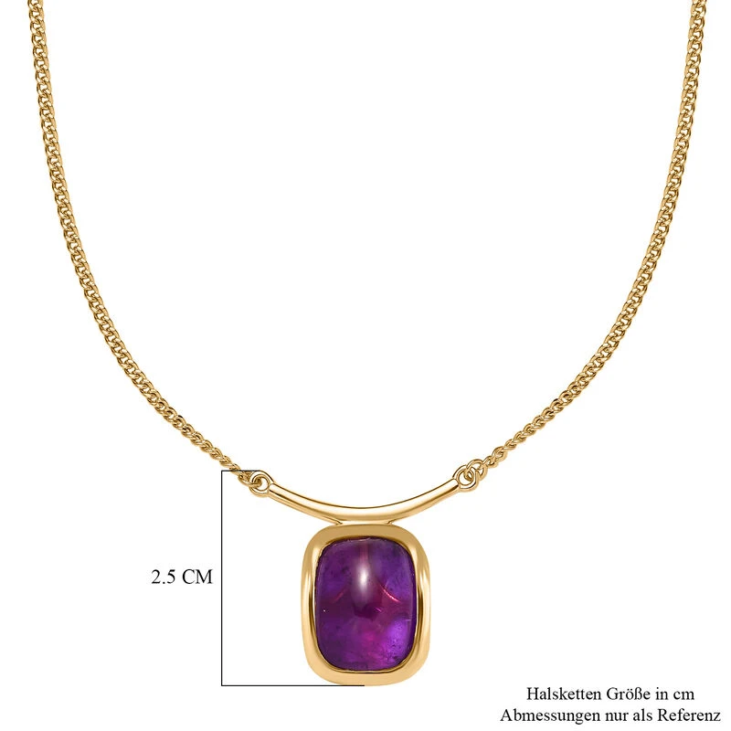 Afrikanischer Amethyst Halskette Ca. 45 Cm 925 Silber Vergoldet Ca. 11.72 Ct