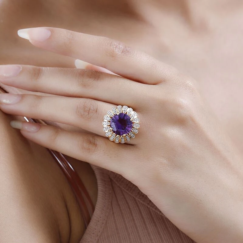 Afrikanischer Amethyst, Weißer Zirkon Ringe 925 Silber Gelbgold Vermeil (Größe 18.00) Ca. 4.41 Ct