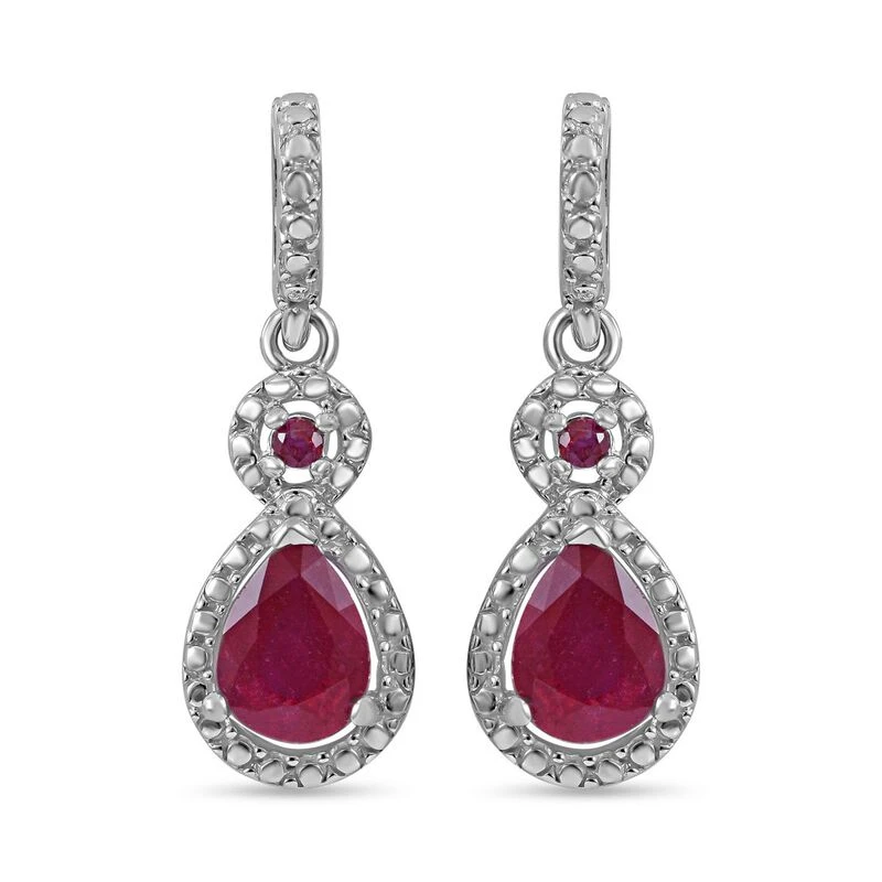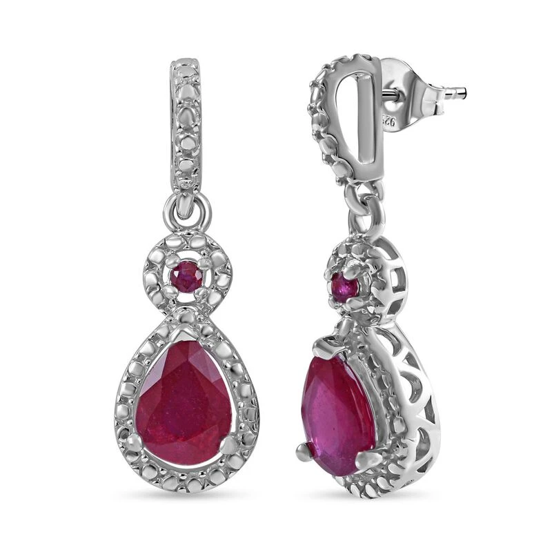 Afrikanischer Rubin (Fissure Gefüllt) Ohrringe 925 Silber Platiniert Ca. 3.19 Ct