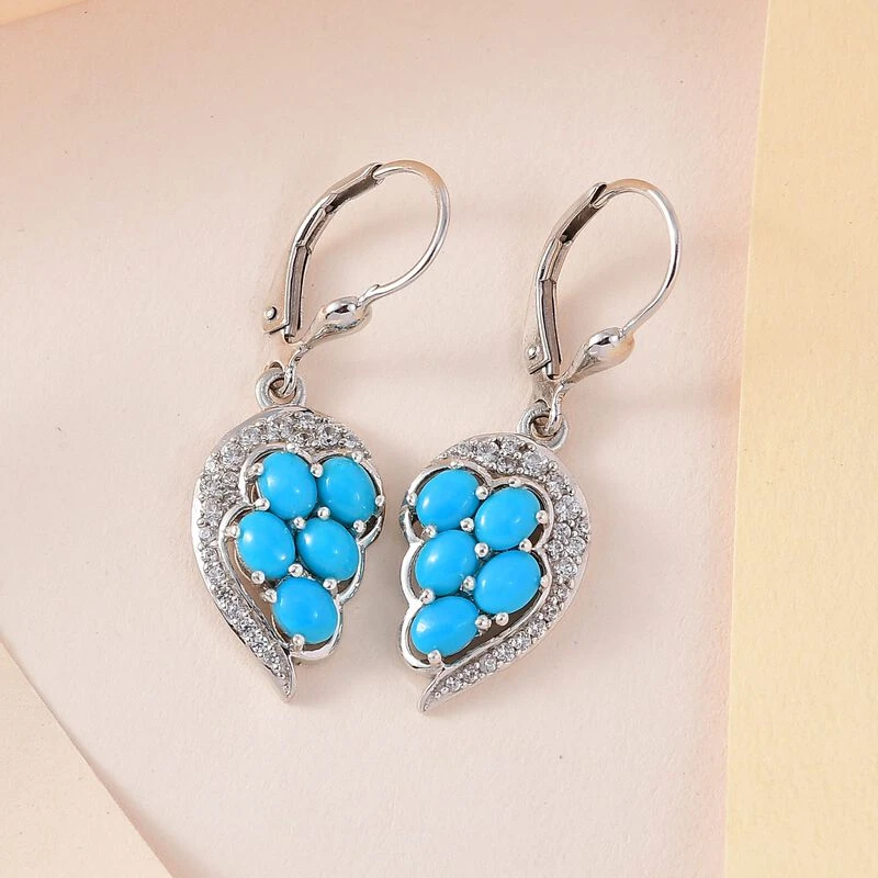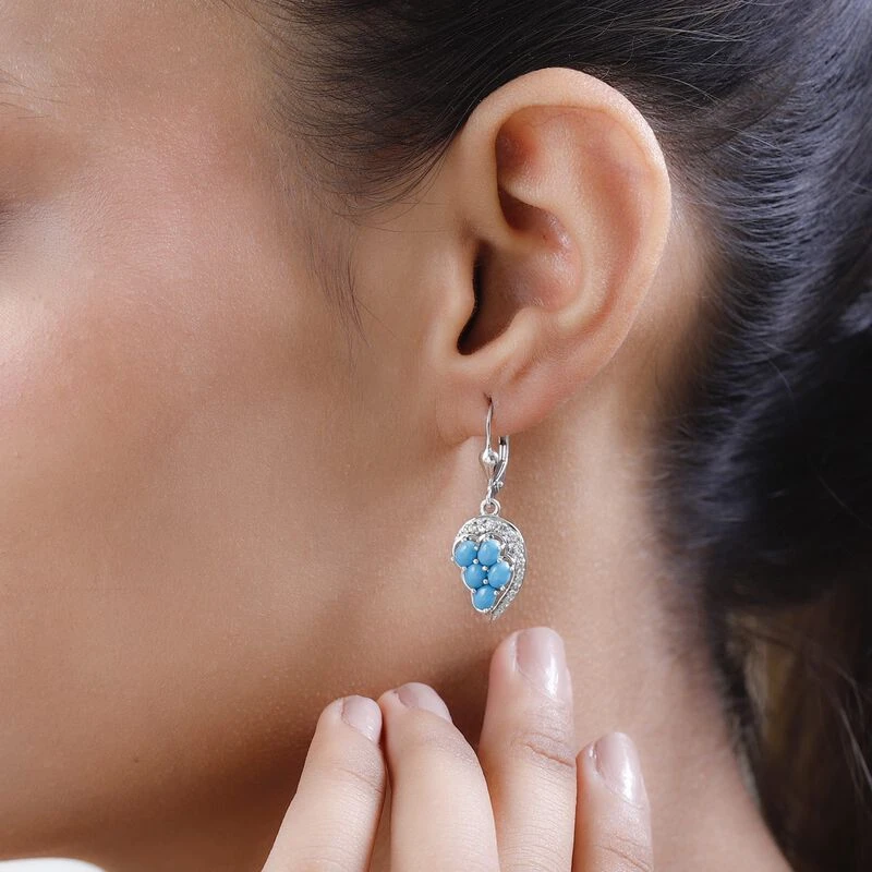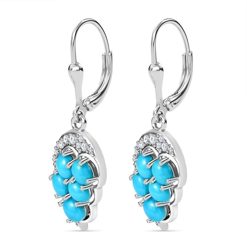 Amerikanische, Natürliche Sleeping Beauty Türkis, Weißer Zirkon Ohrringe 925 Silber Platiniert Ca. 2.36 Ct