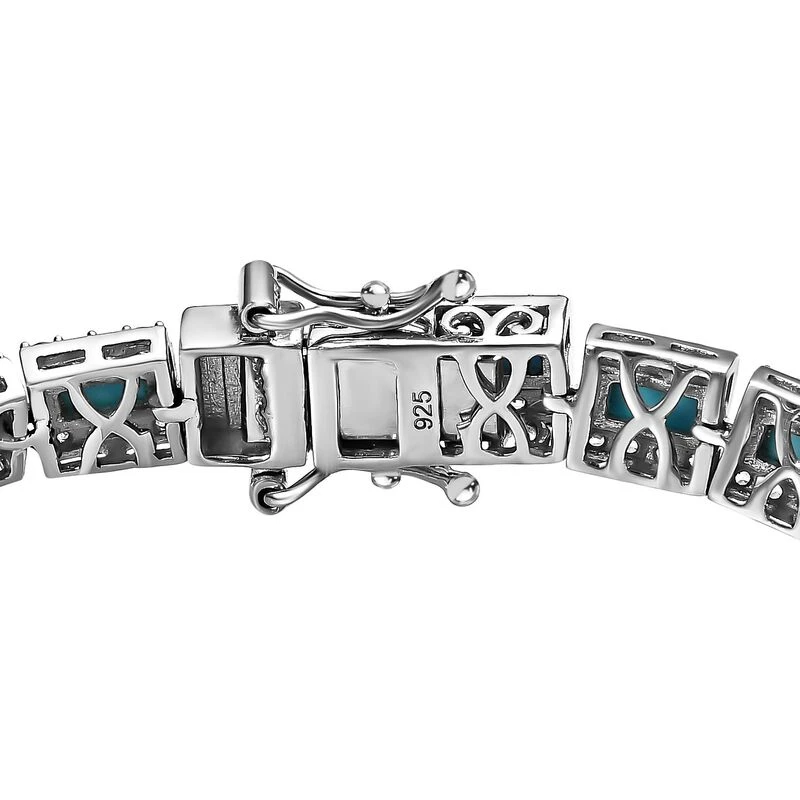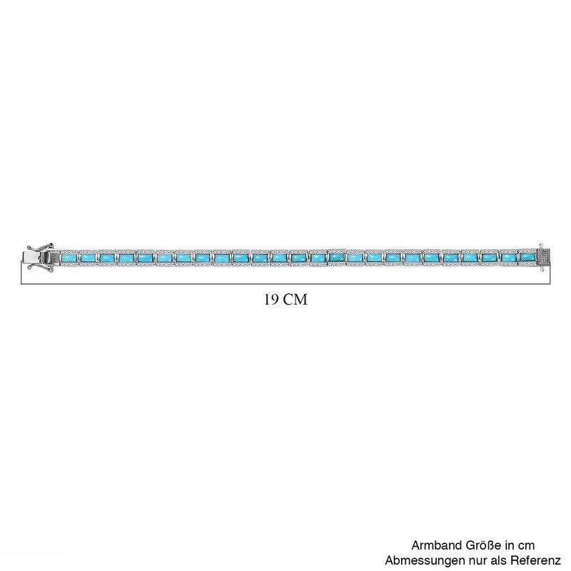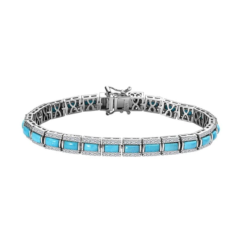 Amerikanischer, Natürlicher Sleeping Beauty Türkis Und Weißer Zirkon Armband, Ca. 18 Cm 925 Silber Platiniert Ca. 11.43 Ct
