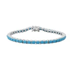 Amerikanisches, Natürliches Sleeping Beauty Türkis-Armband, Ca. 19 Cm, 925 Silber Platiniert Ca. 7.04 Ct