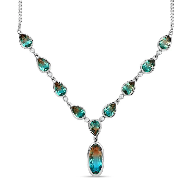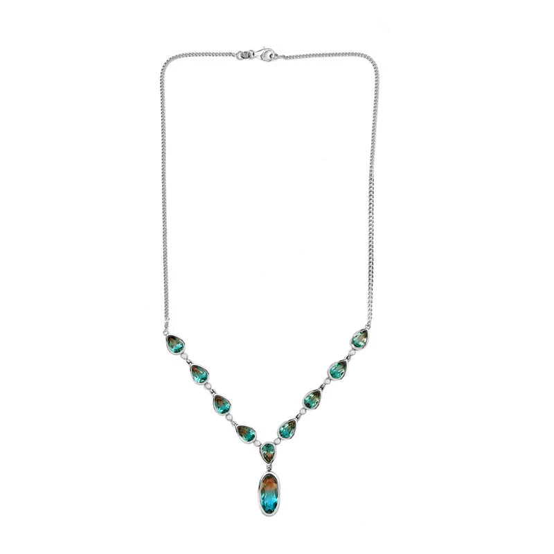 Station-Halskette mit Aqua Terra Costa Quarz und Zirkon (30,06 ct.)in platiniertem Silber (13g). Traumhafte Designs, die Eleganz zu unglaublichen Preisen bieten, nur bei ShopLC.