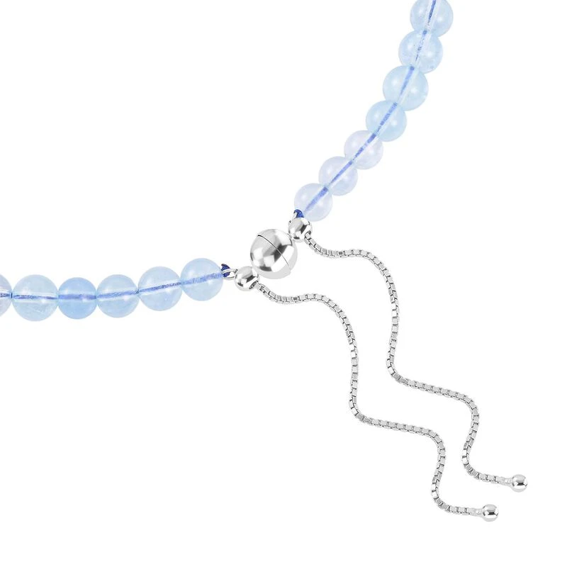 Aquamarin Halskette Ca. 45 Cm 925 Silber Rhodiniert Ca. 244.00 Ct