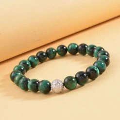 Tigerauge Armband Ca. Flexibles Cm 925 Silber Rhodiniert Ca. 160.00 Ct