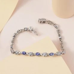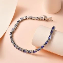 AAA Tansanit, Weißer Zirkon Armband, Ca. 19 Cm 925 Silber Platiniert Ca. 7.66 Ct