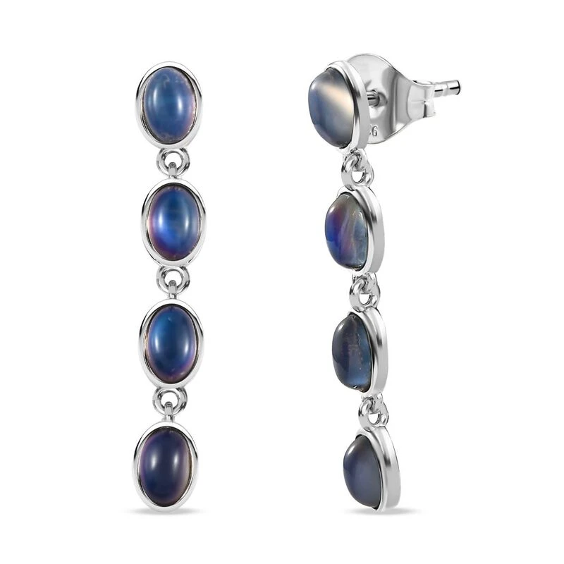 Aurora Mondstein Ohrringe 925 Silber Platiniert Ca. 4.22 Ct