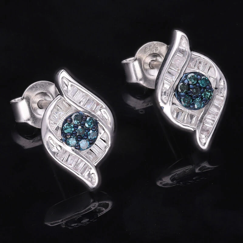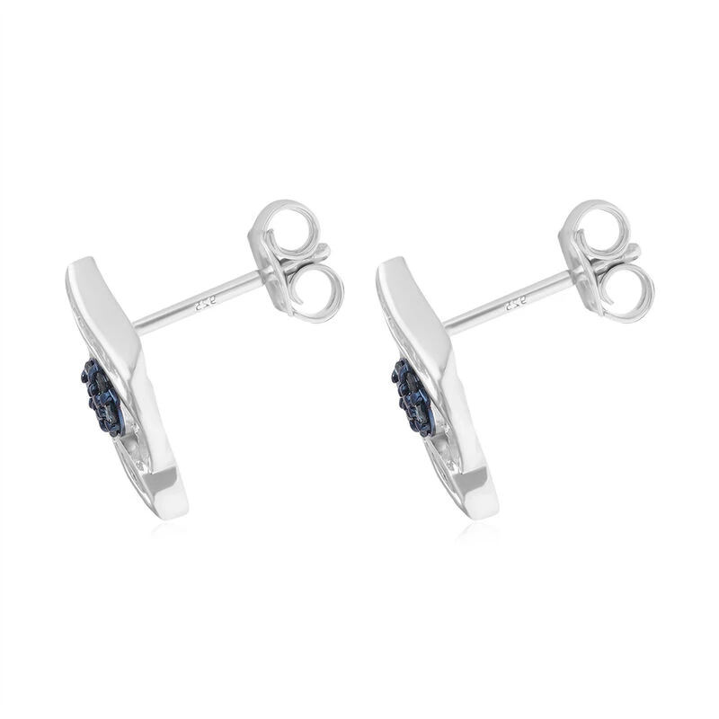Blaue Diamant, Weiße Diamant Ohrringe, 925 Silber Platiniert Ca. 0.33 Ct