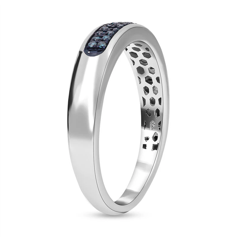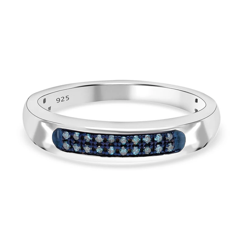 Blauer Diamant Ring, 925 Silber Platiniert (Größe 20.00) Ca. 0.10 Ct
