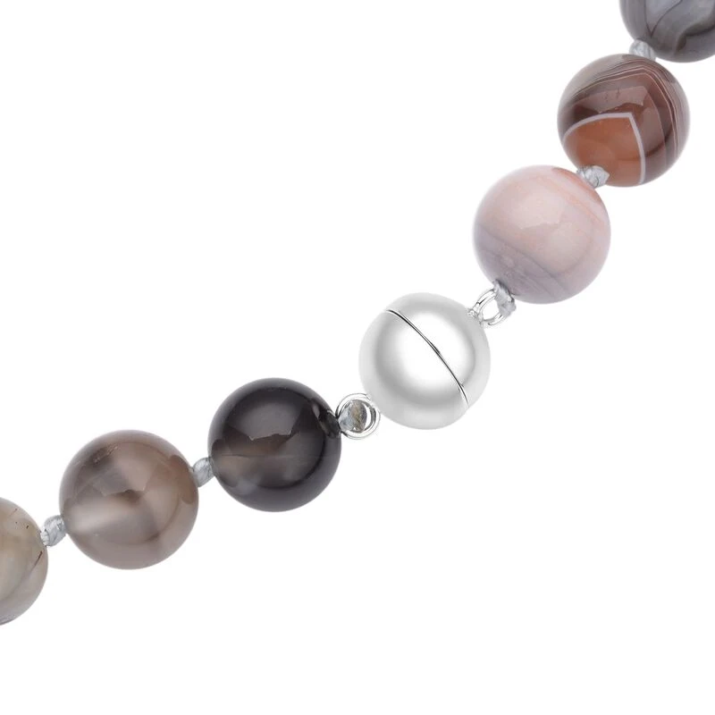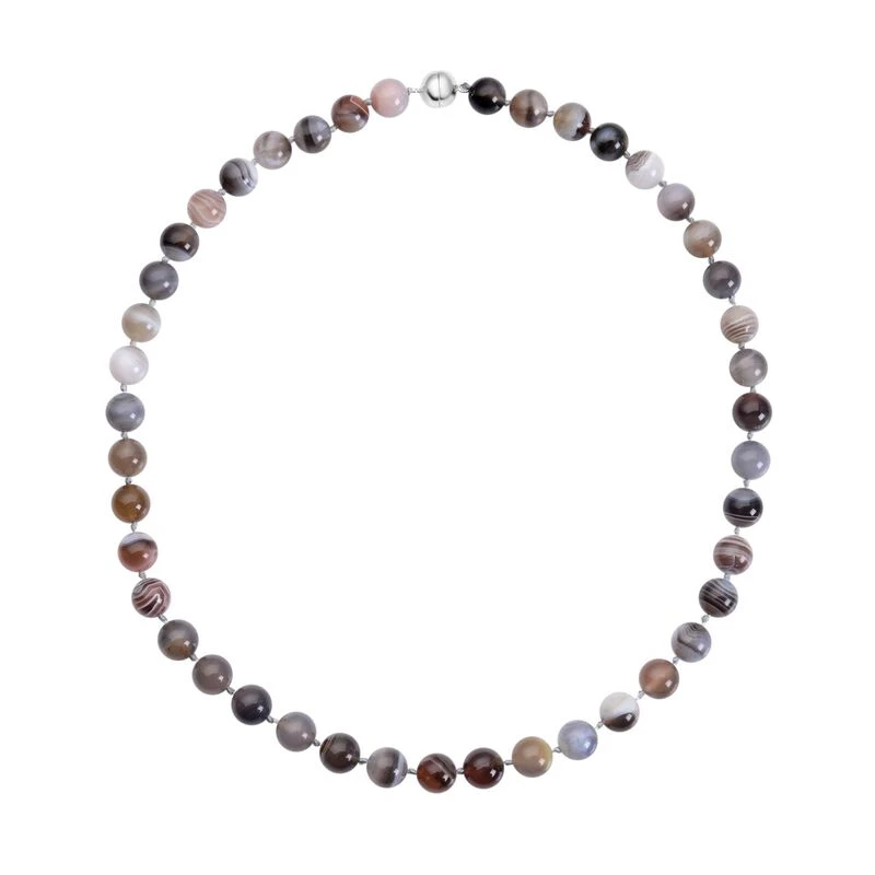 Botswana-Achat Halskette, Ca. 50 Cm, 925 Silber Rhodiniert Ca. 307.00 Ct