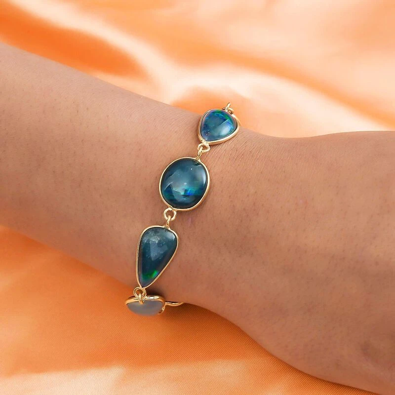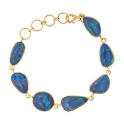 Armband in Station-Fassung mit Boulder Opal (33,18 ct.) in 925 Silber Gelbgold Vermeil (2,6 g). Top-Preise auf Premium-Schmuck für Sie, jetzt zugreifen!