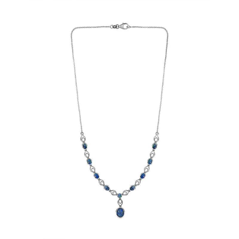 Boulder Opal Triplette Halskette, Ca. 45 Cm, 925 Silber Platiniert Ca. 5.13 Ct