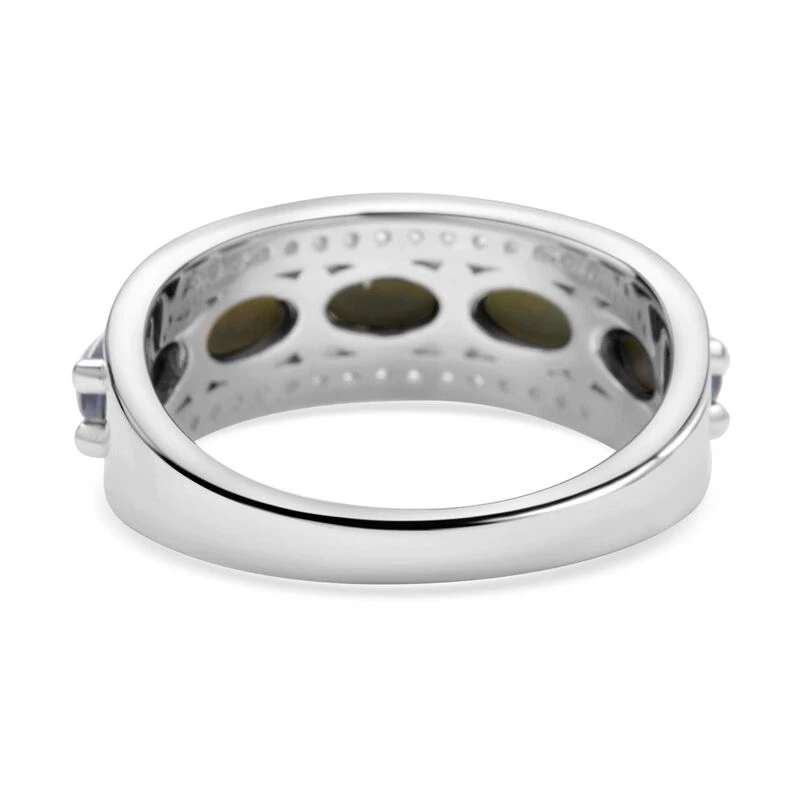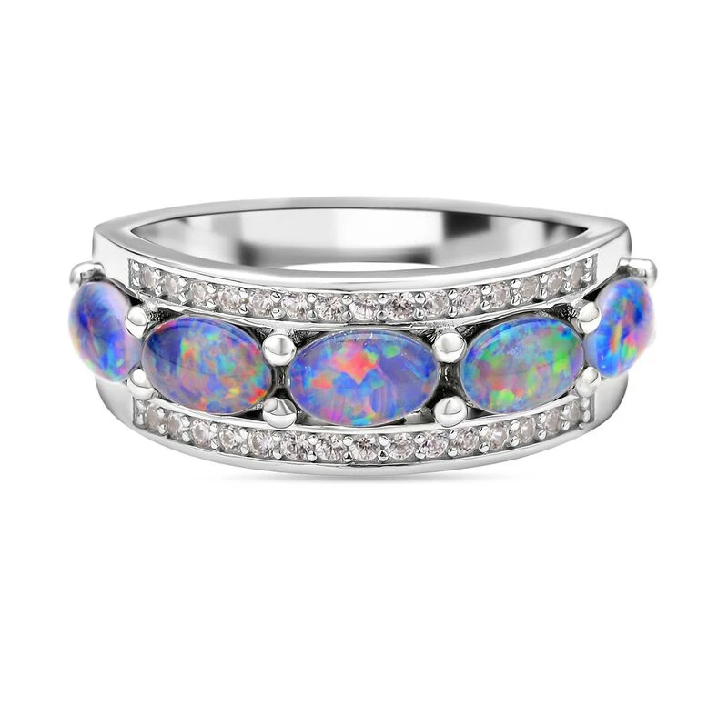 Boulder Opal Triplette Und Weißer Zirkon-Ring, 925 Silber Rhodiniert (Größe 20.00) Ca. 2.05 Ct
