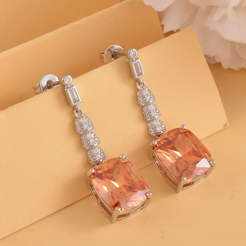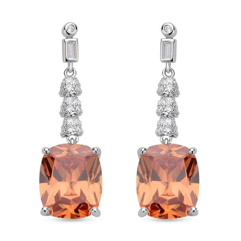 Champagner Und Weiße Zirkonia Ohrringe, Edelstahl Ca. 18.47 Ct
