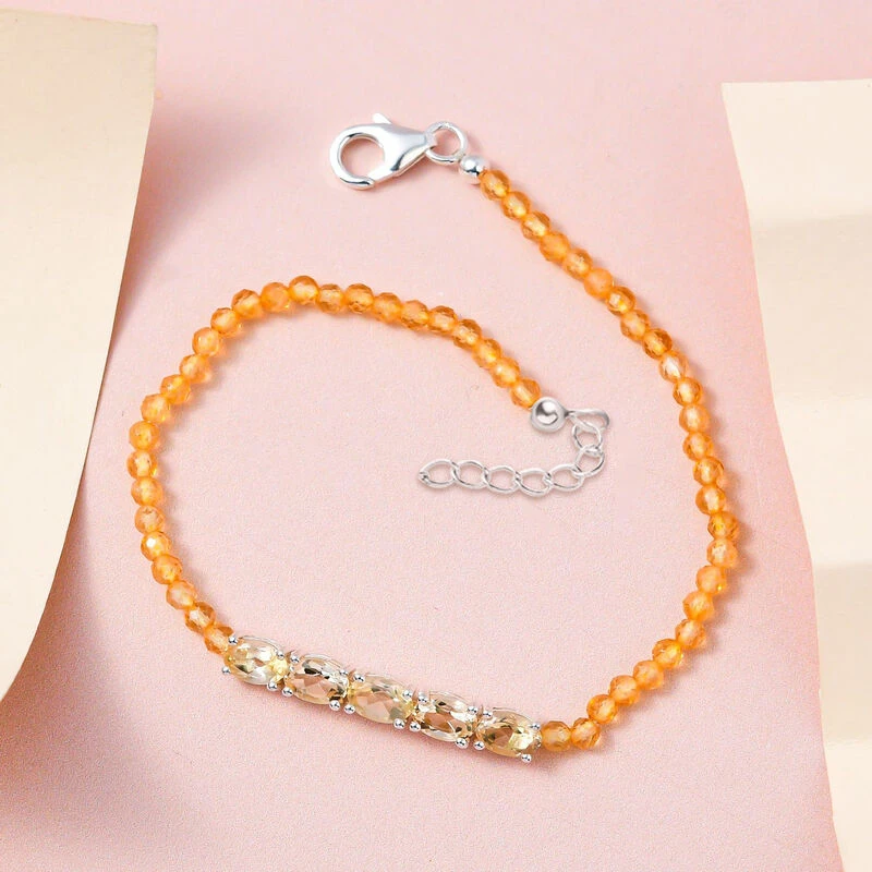 Citrin Armband, Ca. 19 Cm, 925 Silber, Ca. 12.13 Ct