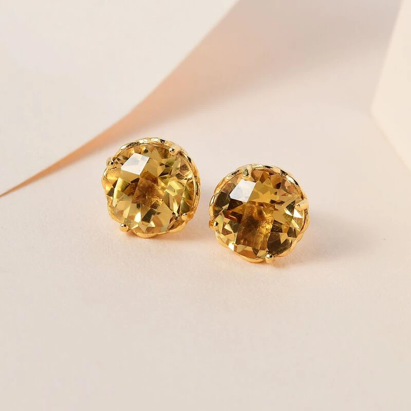 Citrin Ohrringe 925 Silber Gelbgold Vermeil Ca. 4.04 Ct