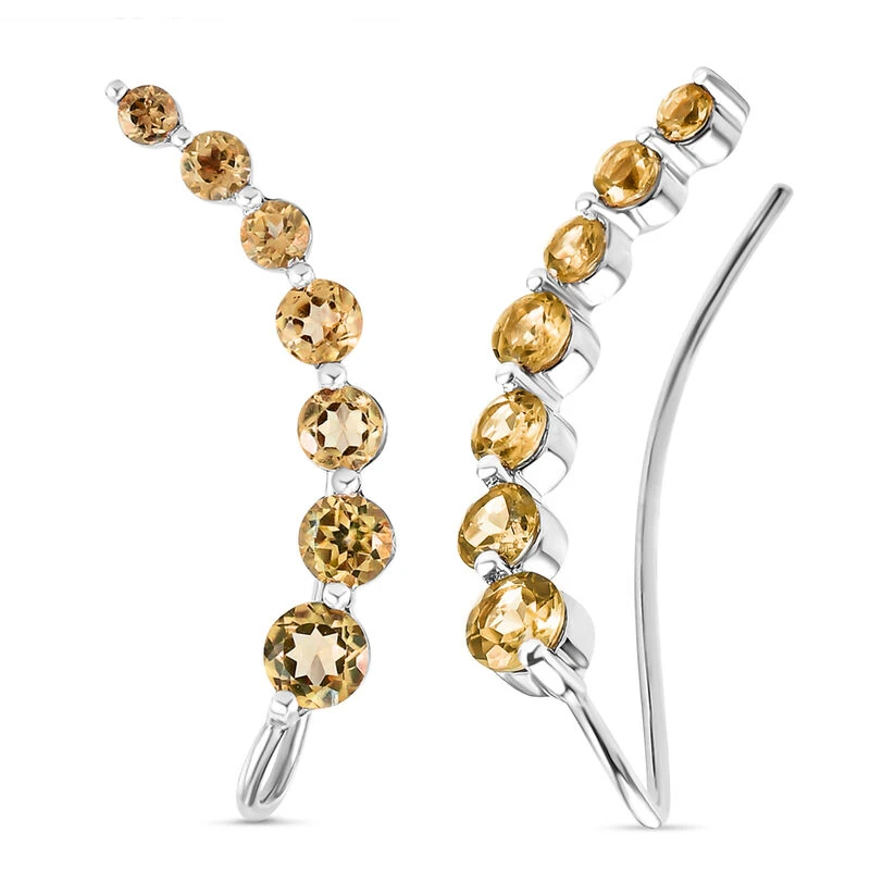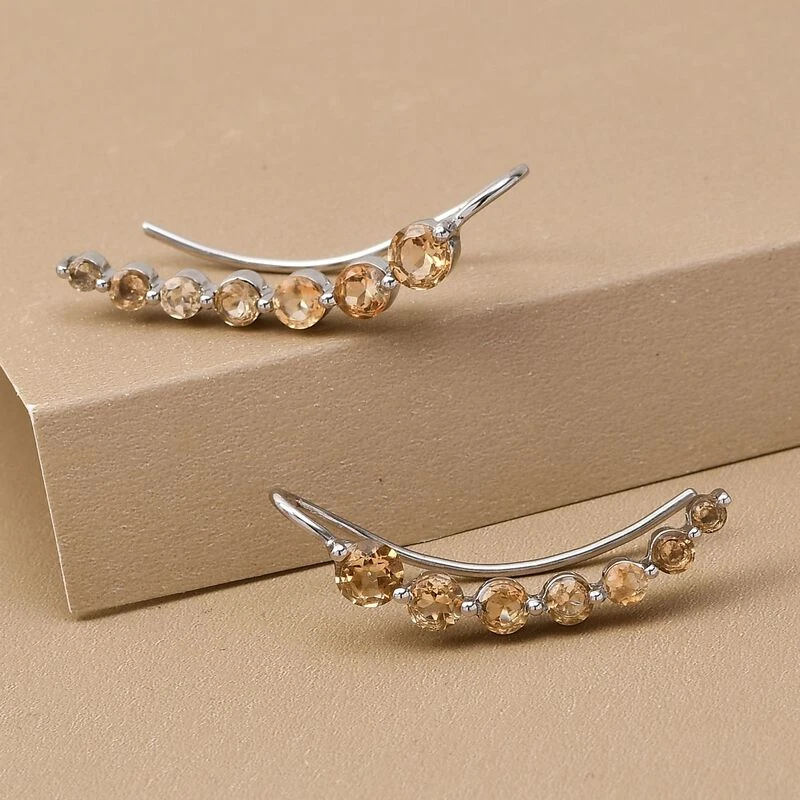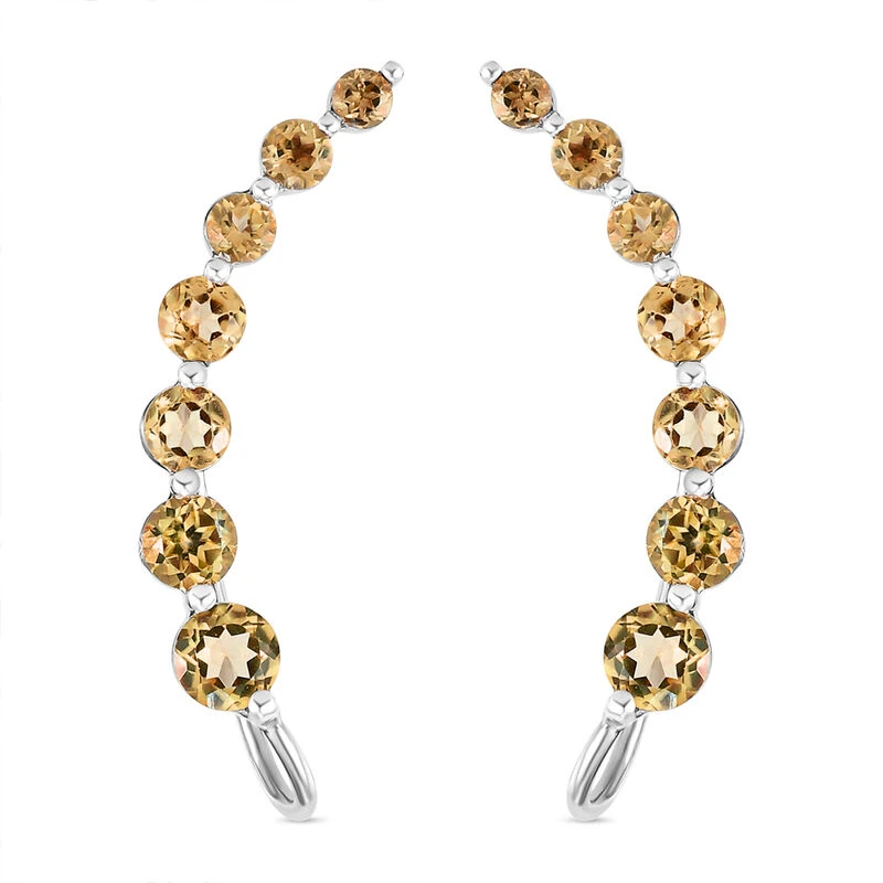 Citrin-Ohrringe, 925 Silber Platiniert Ca. 2.37 Ct