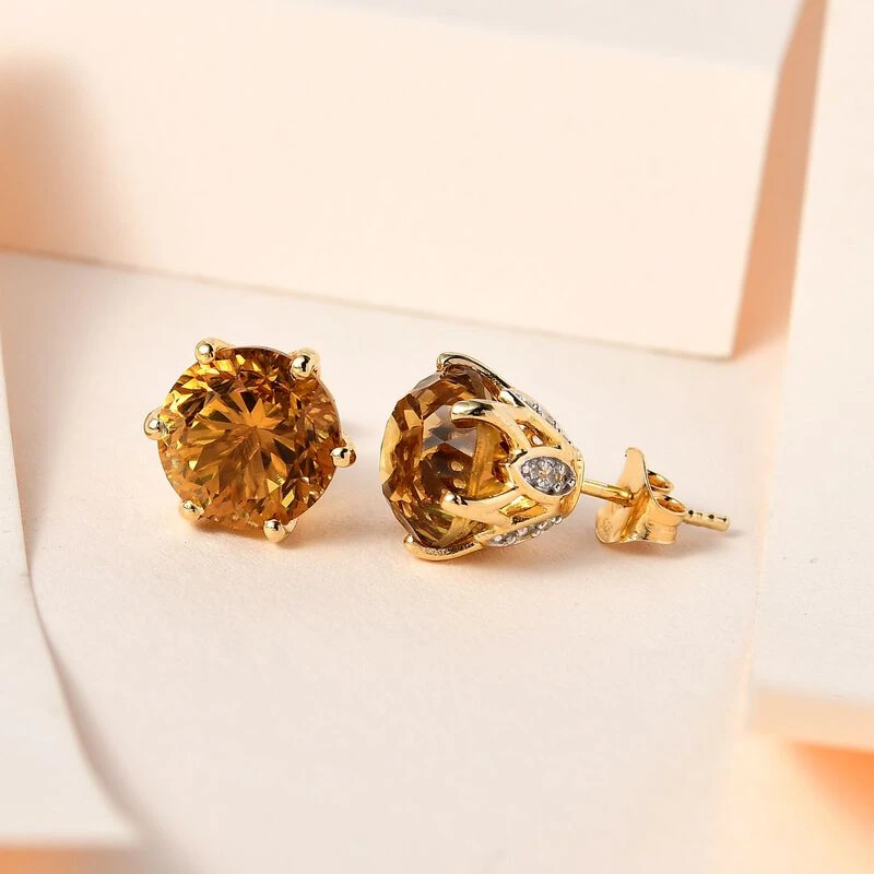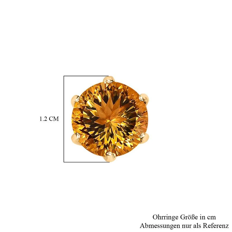 Citrin, Weißer Zirkon Ohrringe Millenial-Schliff, 925 Silber Gelbgold Vermeil Ca. 8.87 Ct