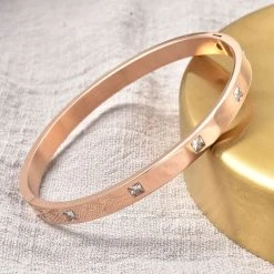 Weißer Kristall Armreif Ca. 19 Cm Reiner Edelstahl, Rosévergoldet