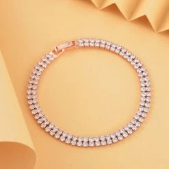 Weißes Zirkonia Armband, Ca. 20 Cm, Ca. 4.00 Ct, Roséfarben 4.00 Ct
