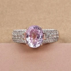 AA Martha Rocha Kunzit Und Weißer Zirkon-Ring, 925 Silber Roségold Vermeil (Größe 20.00) Ca. 4.48 Ct