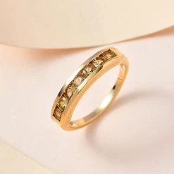 AA Natürlicher Goldener Tansanit Ring, 925 Silber Gelbgold Vermeil, (Größe 17.00) Ca. 0.91 Ct