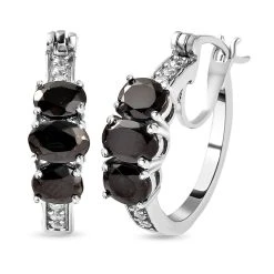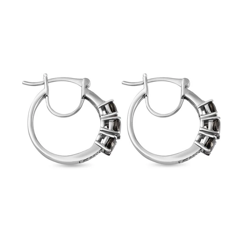 Elite Schungit Creolen, 925 Silber Platiniert Ca. 1.65 Ct