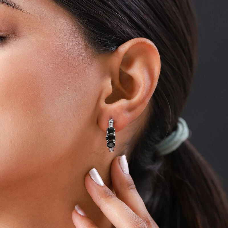 Trilogie-Creolen mit Elite Shungit und Zirkon (1,65 ct.) in platiniertem Silber (4g). Aussagekräftiger Schmuck zu noch nie zuvor gesehenen Tiefstpreisen!