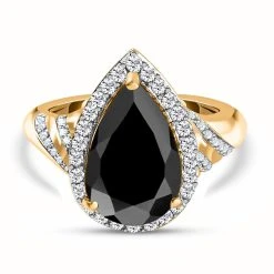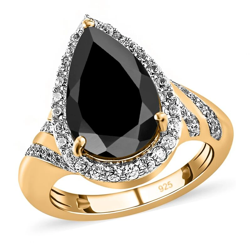Halo-Ring mit 3,49 Karat Elite Shungit und Zirkon in 4g vergoldetem Silber. Statement-Ringe aus unserer Ring-Kollektion zu Schnäppchenpreisen – jetzt zugreifen!