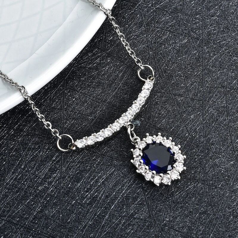 Halo-Halskette mit simuliertem, blauem Kristall und Zirkonia (1,50 ct.) in Silberton (5g). Zeitlose Schmuckdesigns zu exklusiven, kostengünstigen Preisen, jetzt entdecken und shoppen!