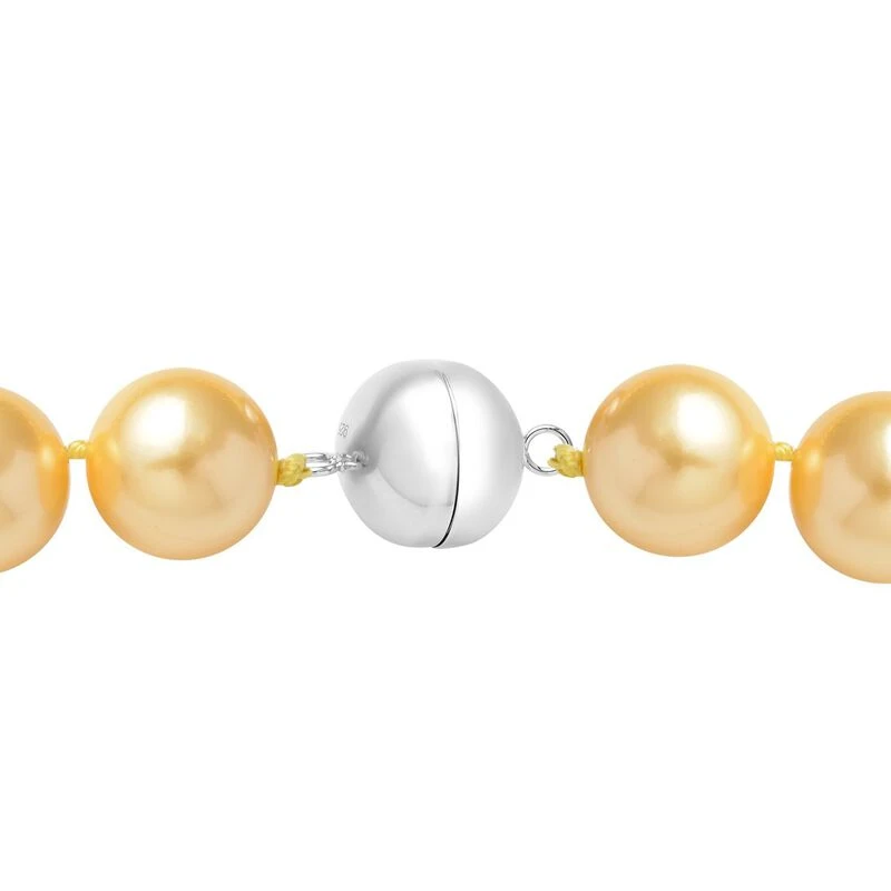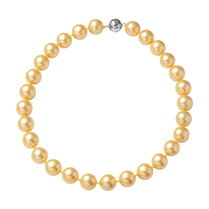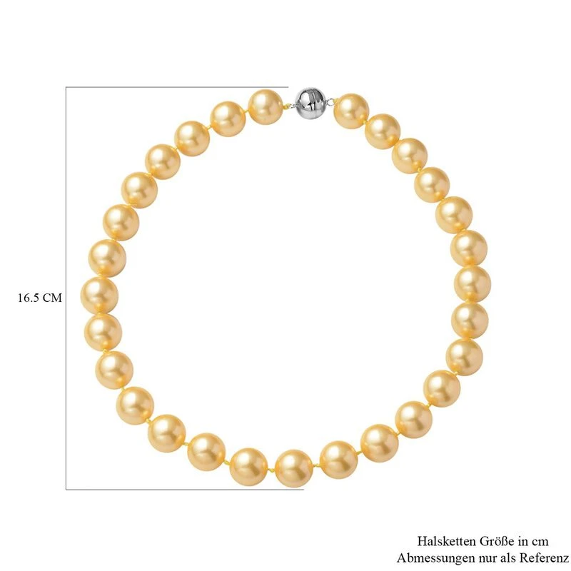 Goldene Muschelkernperlen-Halskette (15-17 Mm), Ca. 50 Cm, 925 Silber Rhodiniert