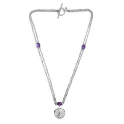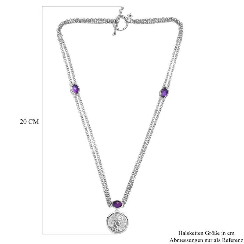 GP Coin-Kollektion – Afrikanische Amethyst Halskette, Ca. 45 Cm, 925 Silber Platiniert Ca. 3.51 Ct