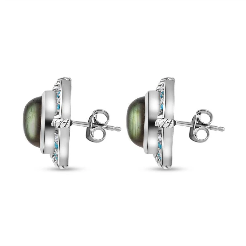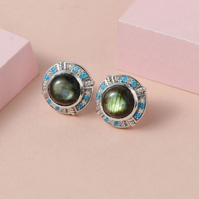 GP Kollektion – Labradorit, Kanchanaburi Blaue Saphir Ohrringe, 925 Silber Platiniert Ca. 10.24 Ct