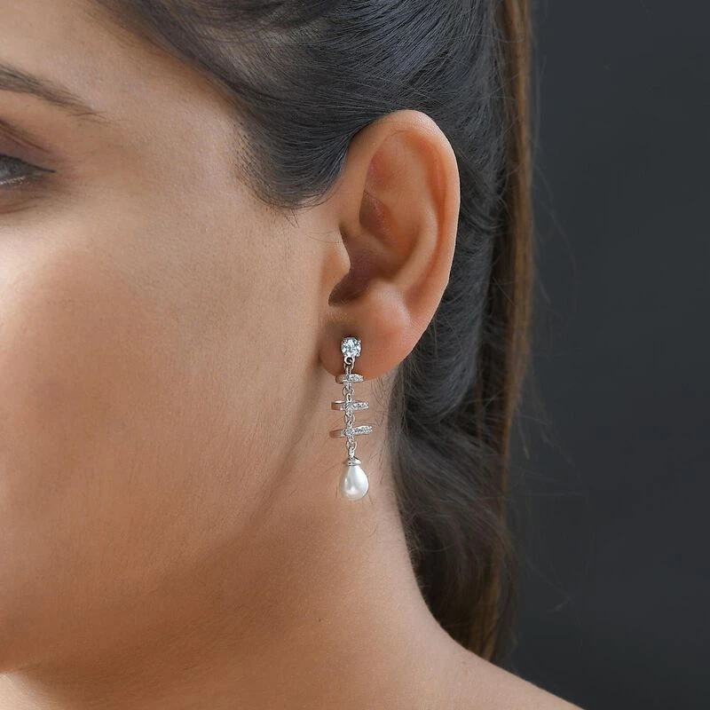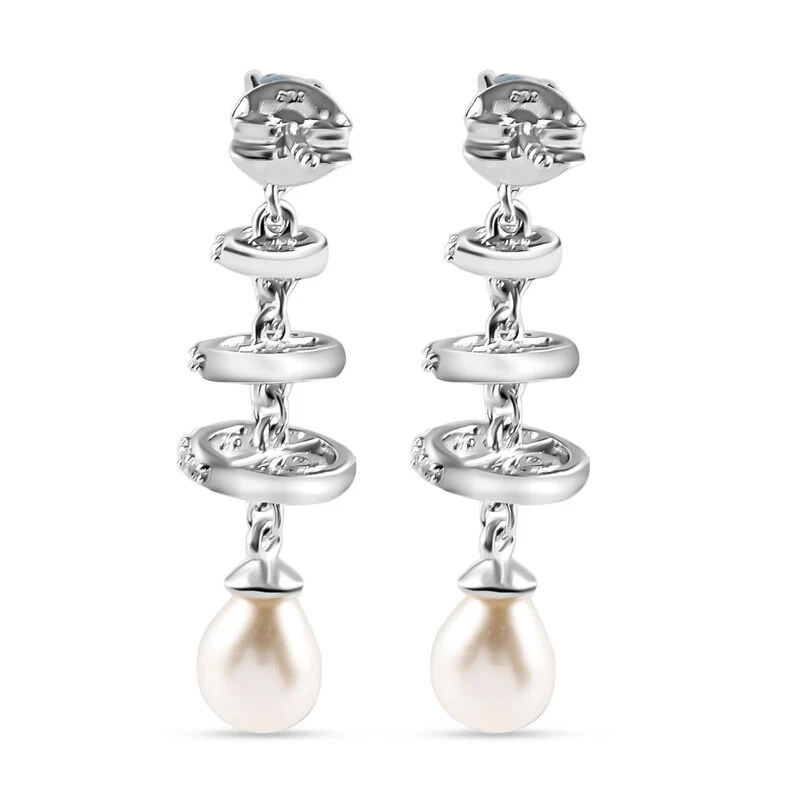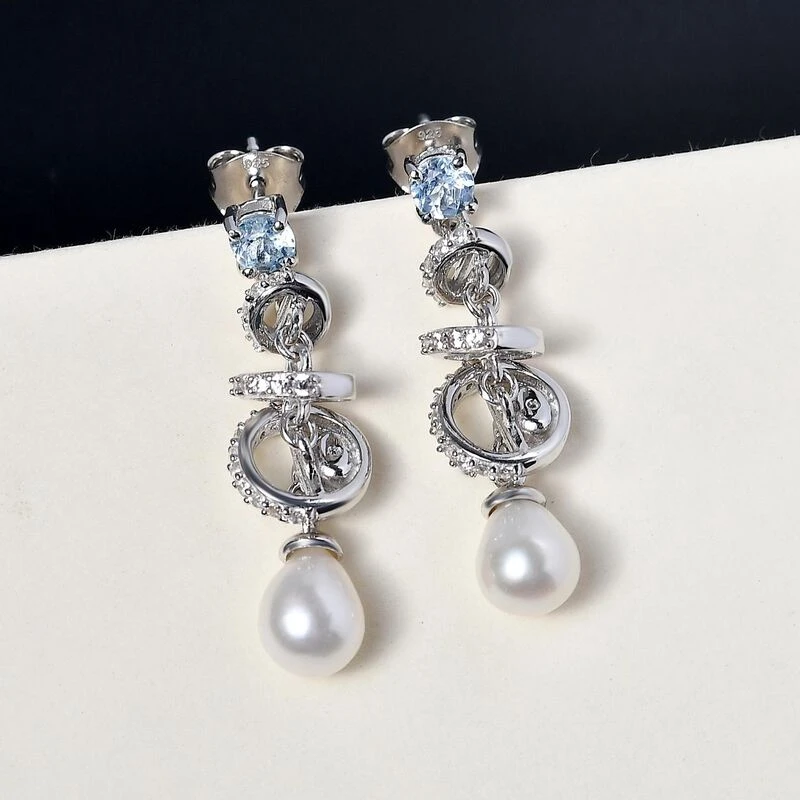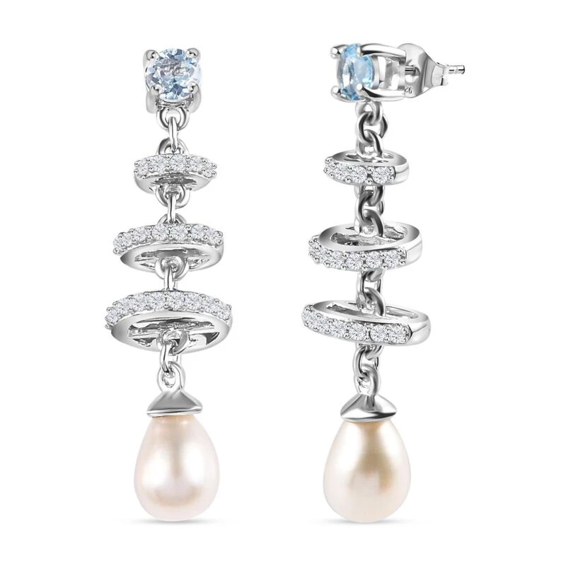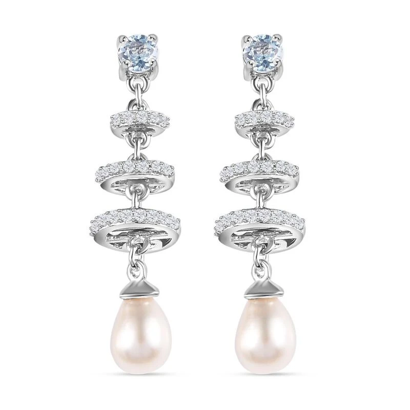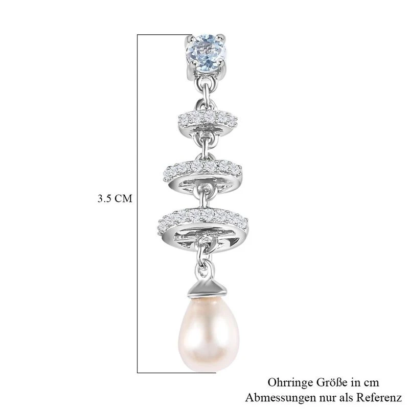 GP Kollektion – Weiße Perlen Und Himmelblaue Topas Ohrringe, 925 Silber Platiniert Ca. 1.04 Ct