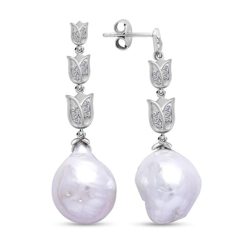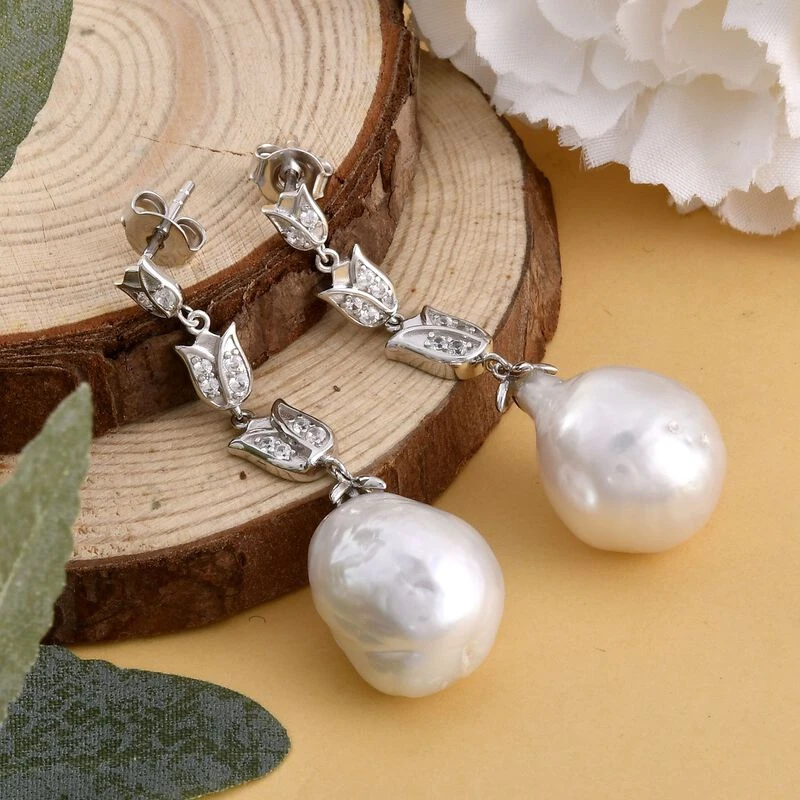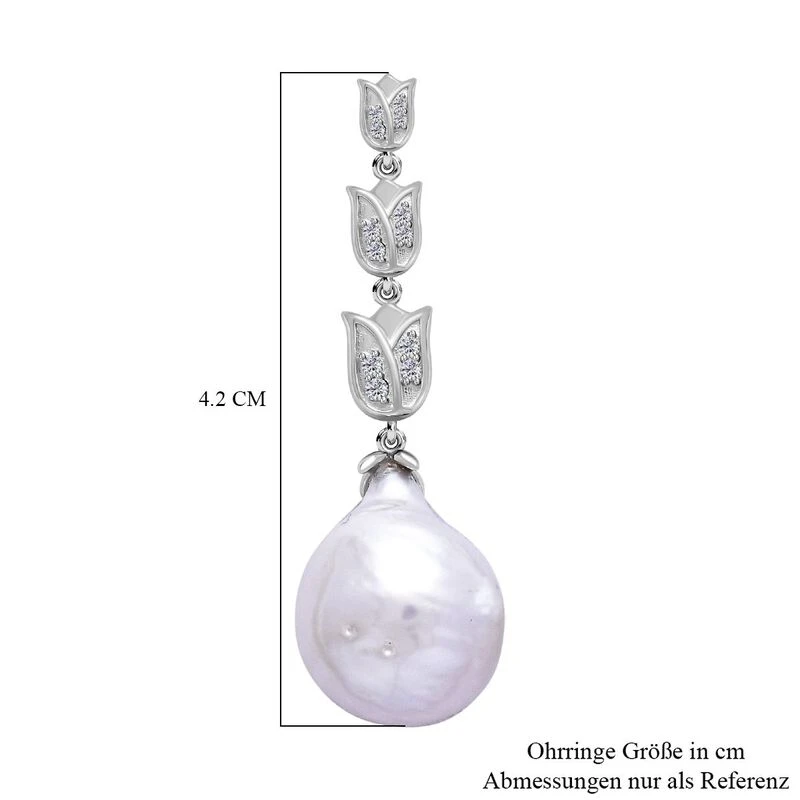 GP Regina Kollektion – Weiße Barockperle, Blaue Saphir Und Weiße Zirkon Ohrringe, 925 Silber Rhodiniert Ca. 0.37 Ct
