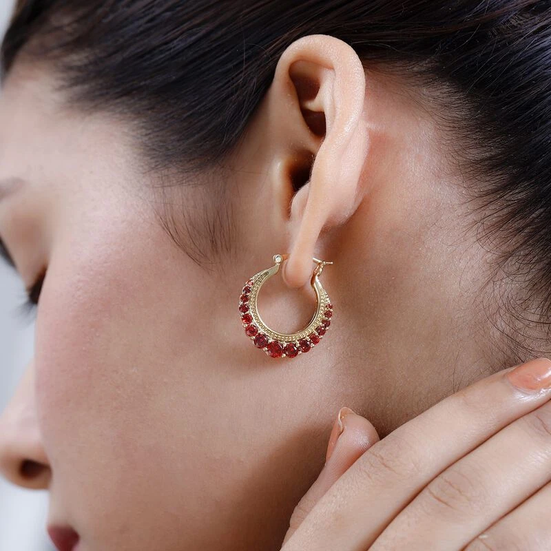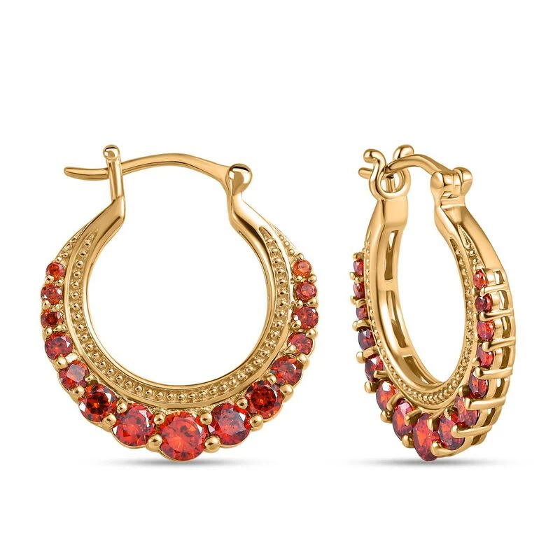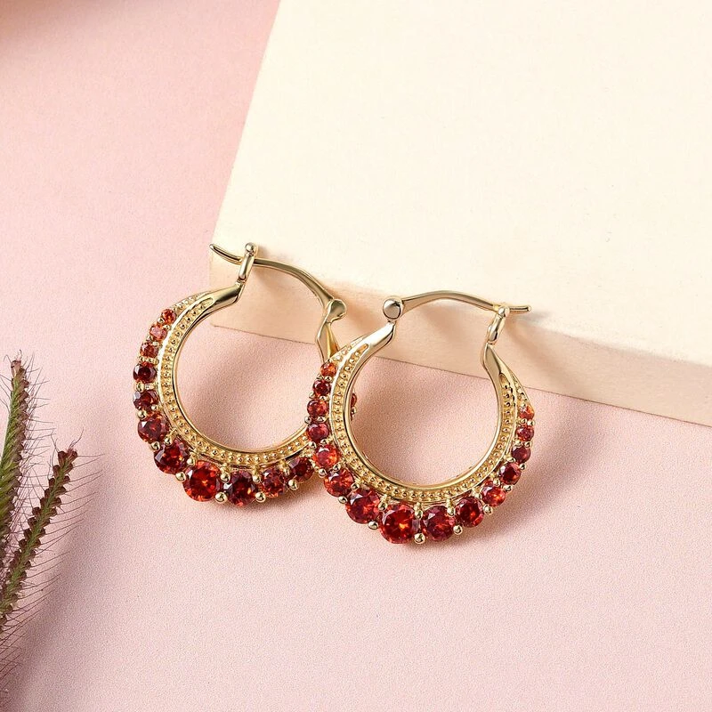 Granat Zirkonia Ohrringe, Messing Vergoldet Ca. 4,24 Ct