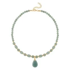 Grüner Aventurin Halskette, Ca. 45 Cm, Vergoldet Ca. 147.50 Ct